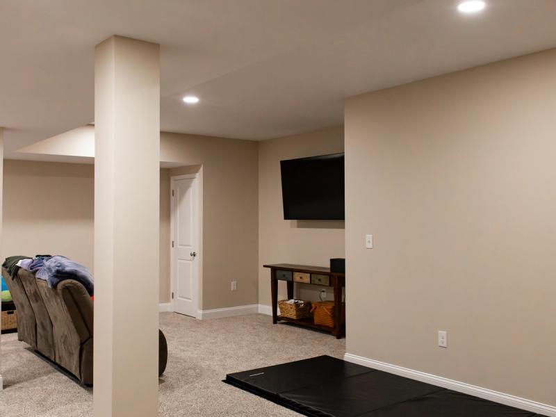 This finished basement located in Pennsburg combines style and family fun with an open layout, warm lighting, and a custom-built playhouse tucked under the stairs. Perfect for entertaining, relaxing, or sparking kids’ imaginations!