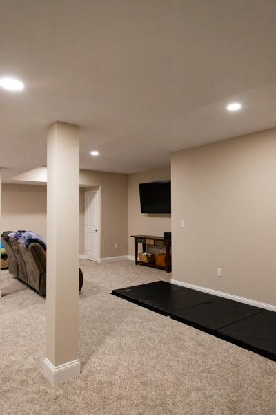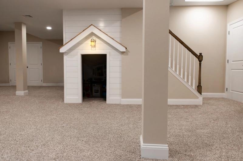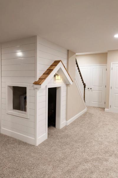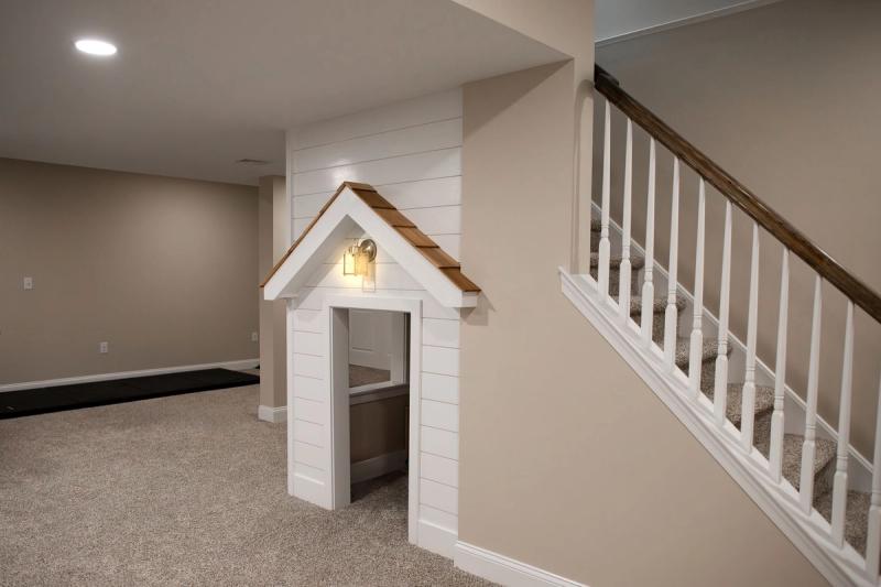 This finished basement located in Pennsburg combines style and family fun with an open layout, warm lighting, and a custom-built playhouse tucked under the stairs. Perfect for entertaining, relaxing, or sparking kids’ imaginations!